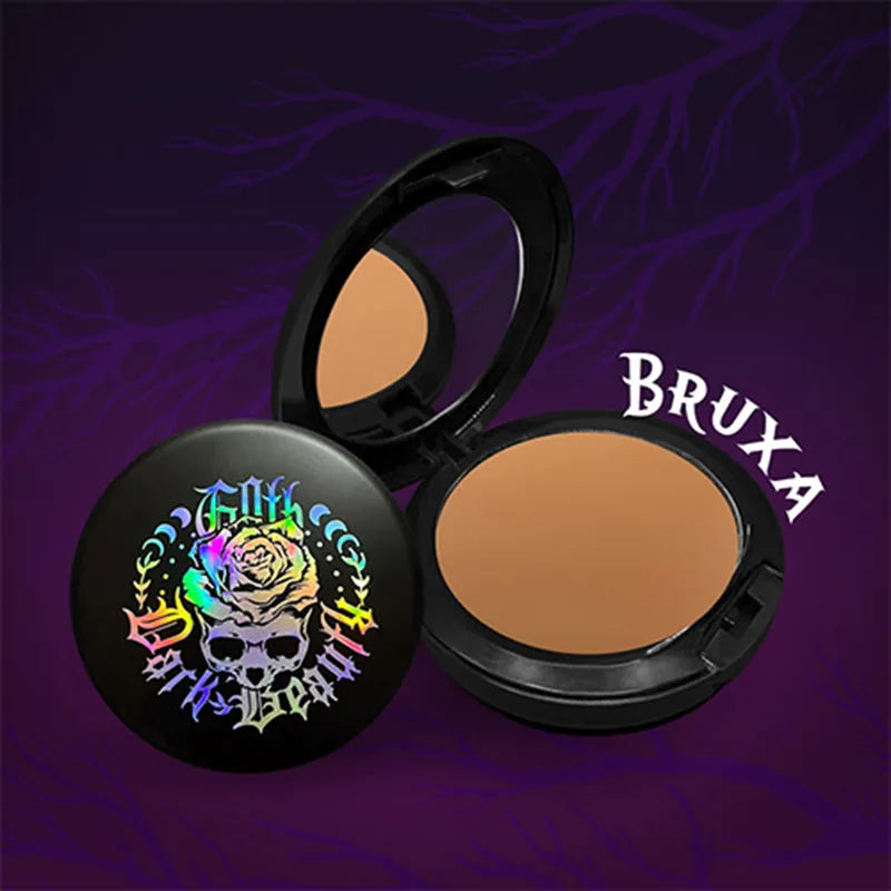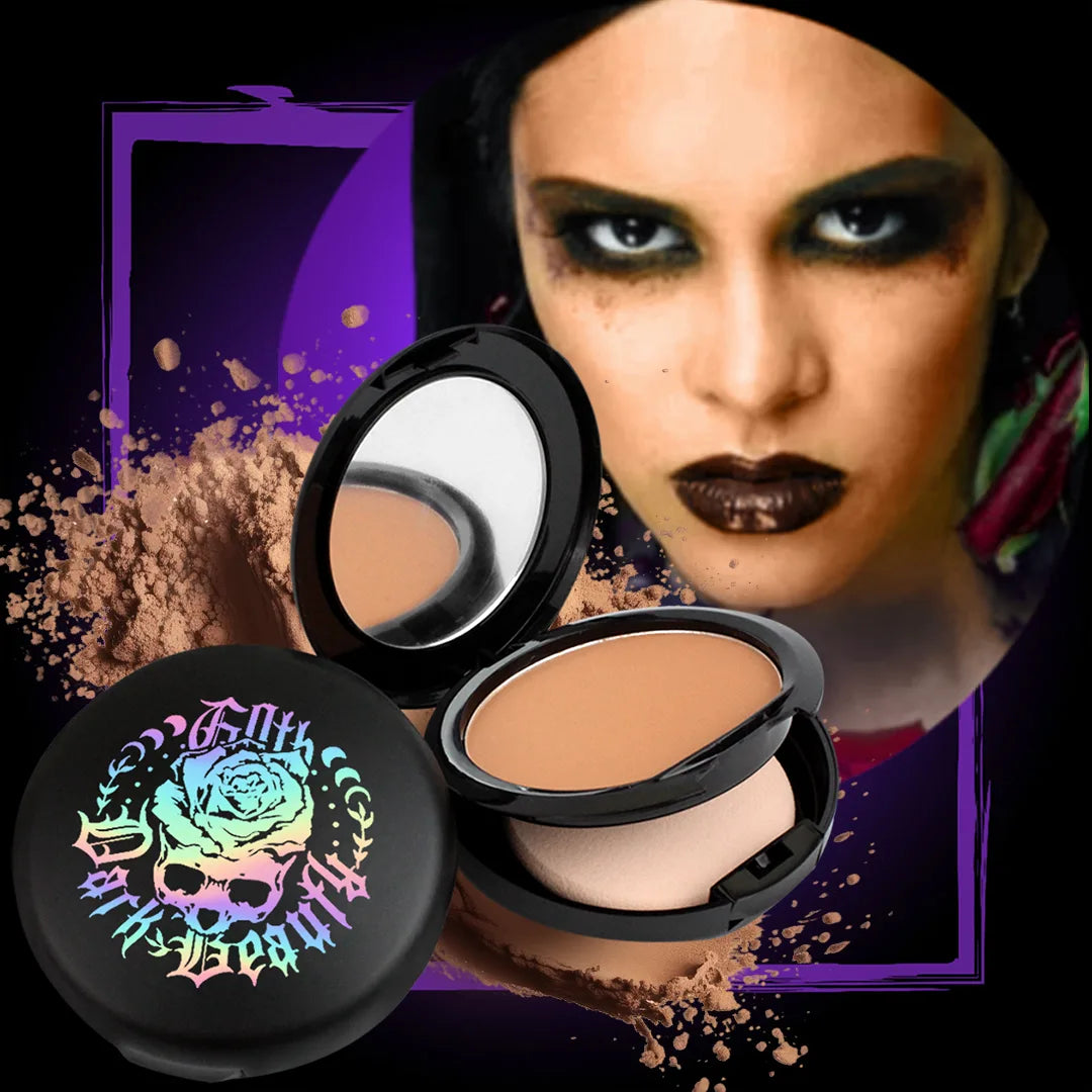 Polvo compacto ideal para pieles sensibles, colección GOTH deja tu piel como terciopelo con un acabado natural y matte, difumina los poros, formula vegana y libre de crueldad
