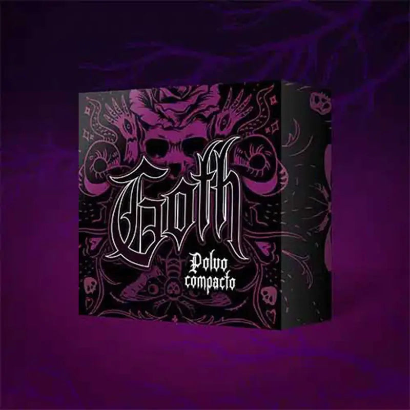 Polvo compacto ideal para pieles sensibles, colección GOTH deja tu piel como terciopelo con un acabado natural y matte, difumina los poros, formula vegana y libre de crueldad