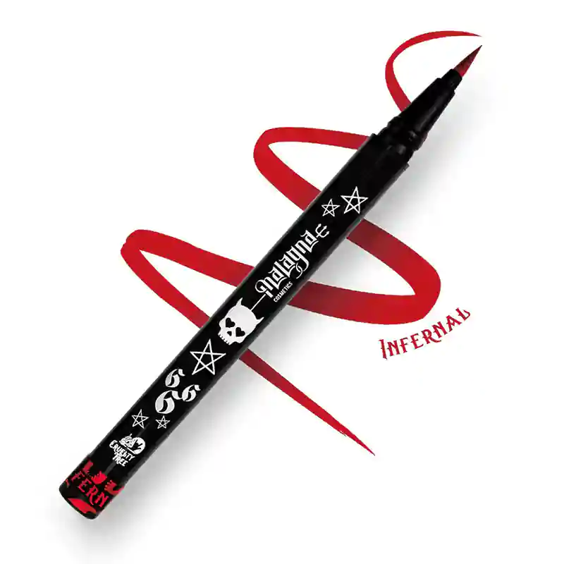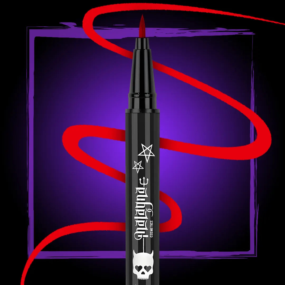 Delineador de plumón rojo indeleble de larga duración, no se corre, a prueba de lagrimas, con punta de precisión para delineados más precisos, fáciles y rápidos en un solo trazo. El delineador más resistente de formula vegana y libre de crueldad.