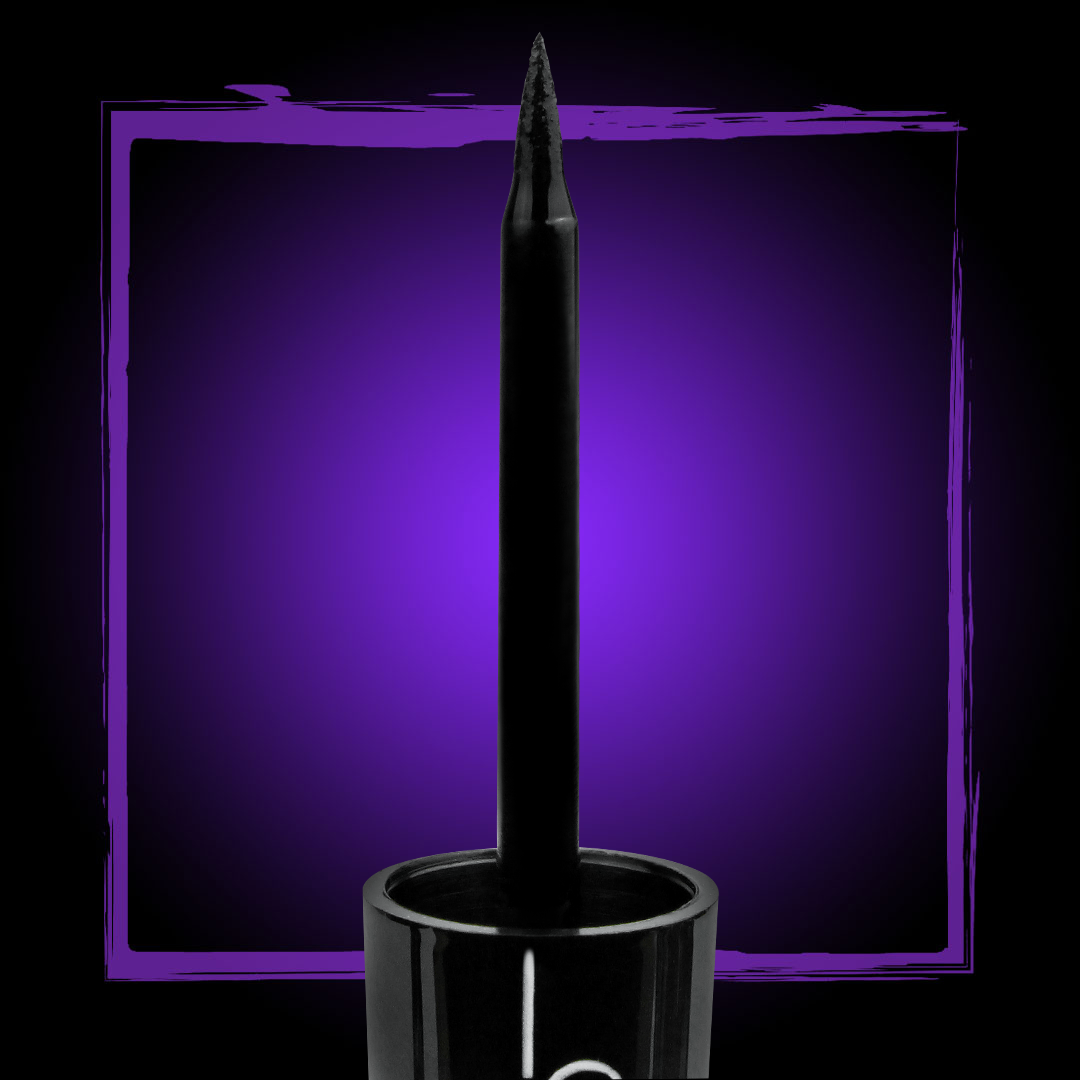 Delineador líquido de brocha de punta fina tono Siniestro de larga duración a prueba de agua, cuando te gane el sentimiento siéntete segura de sacarlo, ¡No se te correrá! es de larga duración, hasta 14hrs, úsalo desde que te levantes hasta la media noche, ¡lucirás intacta! se seca rápido, no tendrás que esperar con los ojos cerrados que se seque tu maquillaje para no manchar tu párpado superior, está formulado con los mejores ingredientes para los ojos más sensibles, tiene una punta fina de precisión perfecta para delineados gráficos y ojos de gato.
