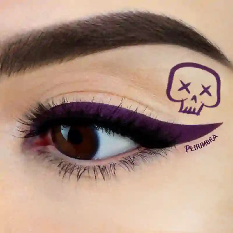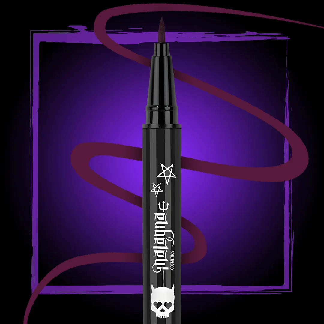 Delineador de plumón morado indeleble de larga duración, no se corre, a prueba de lagrimas, con punta de precisión para delineados más precisos, fáciles y rápidos en un solo trazo. El delineador más resistente de formula vegana y libre de crueldad.