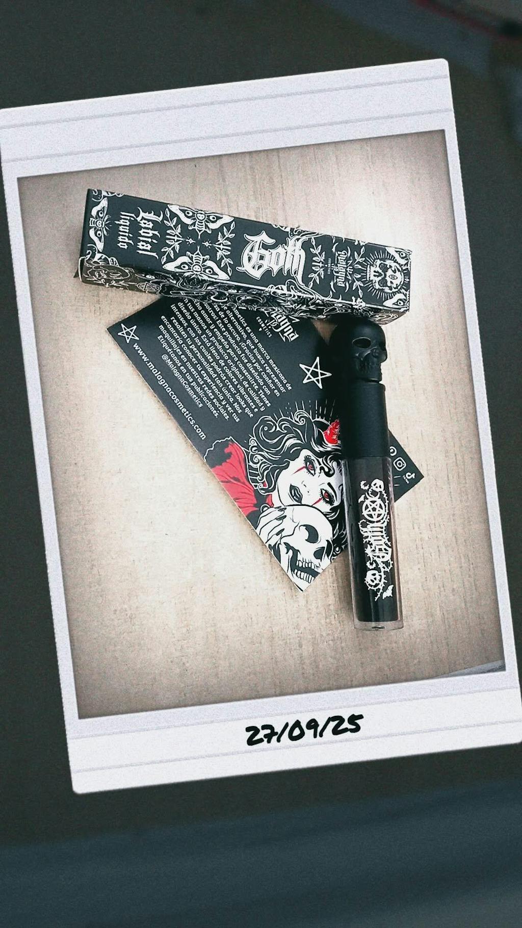 Labial matte indeleble ultra pigmentado color negro matte, larga duración, no reseca los labios, formula vegana y libre de crueldad, a prueba de agua, colección Goth.