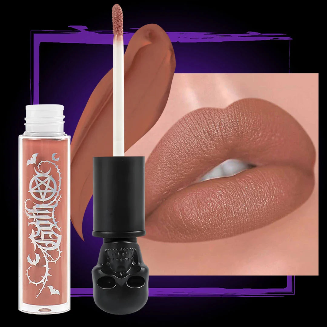 Labial matte indeleble ultra pigmentado larga duración, no reseca los labios, formula vegana y libre de crueldad, a prueba de agua, colección Goth.