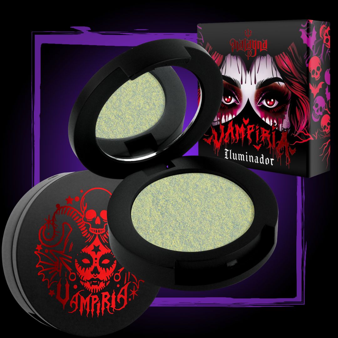 Ilumina tu belleza oscura con nuestro Iluminador en Polvo Ultra Brilloso, diseñado especialmente para las almas góticas que desean resaltar su luminosidad única. Este iluminador, con un encantador diseño circular y un espejo integrado, es perfecto para llevar contigo a cualquier lugar. La portada presenta un intrigante vampiro, evocando la esencia mística y seductora de la estética gótica. Con una fórmula vegana y libre de crueldad, puedes brillar con confianza, sabiendo que tu elección es ética y responsable. Ideal para pieles sensibles, este iluminador se aplica suavemente, dejando un acabado radiante y duradero. ¡Deja que tu luz interior brille con este imprescindible maquillaje!