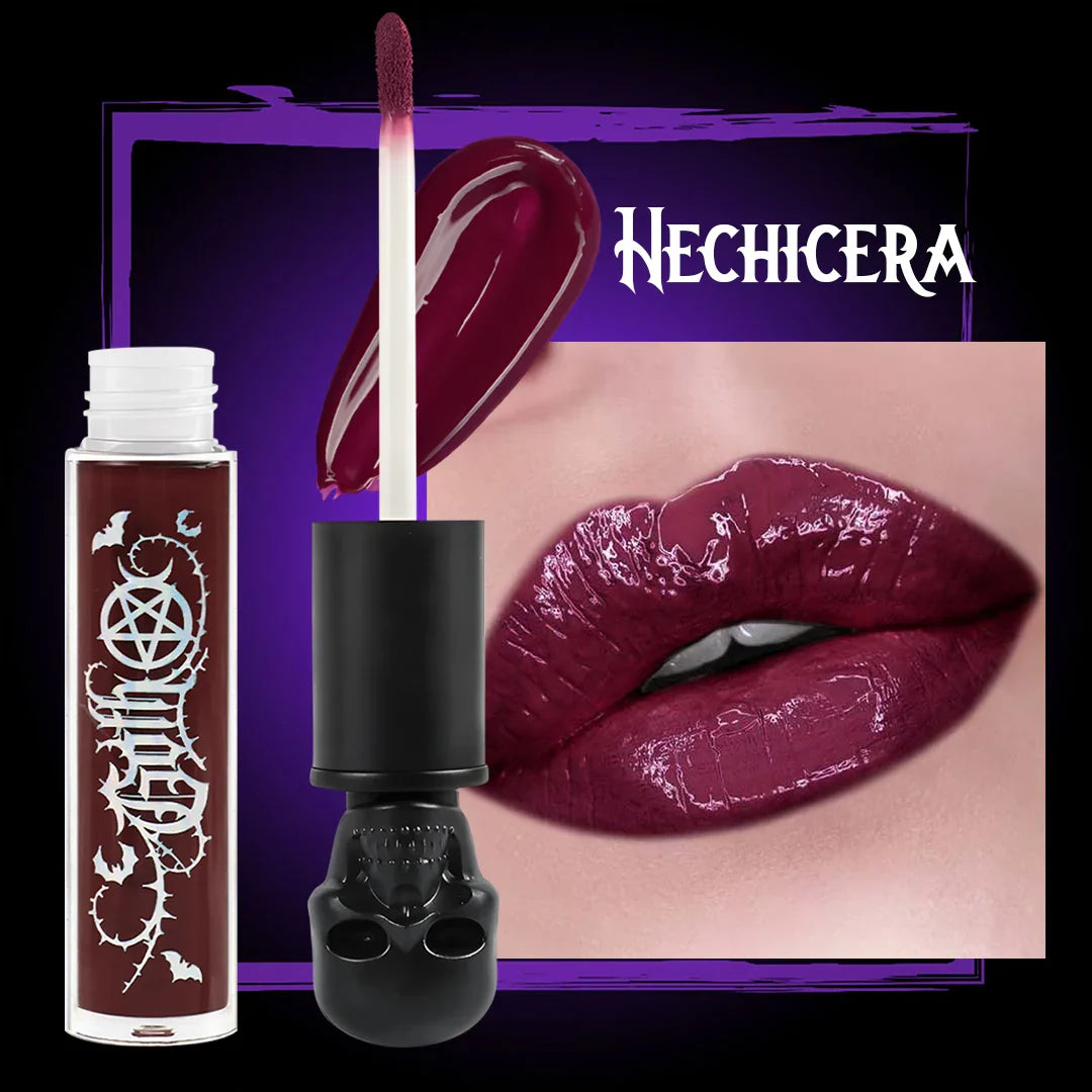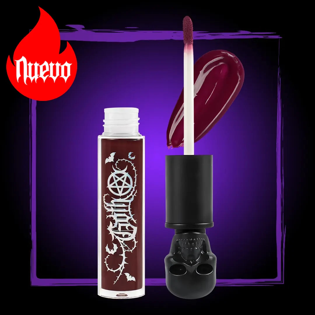 Labial gloss ultra pigmentado color VINO, hidratante, no reseca los labios, formula vegana y libre de crueldad, muy pigmentado, colección Goth.